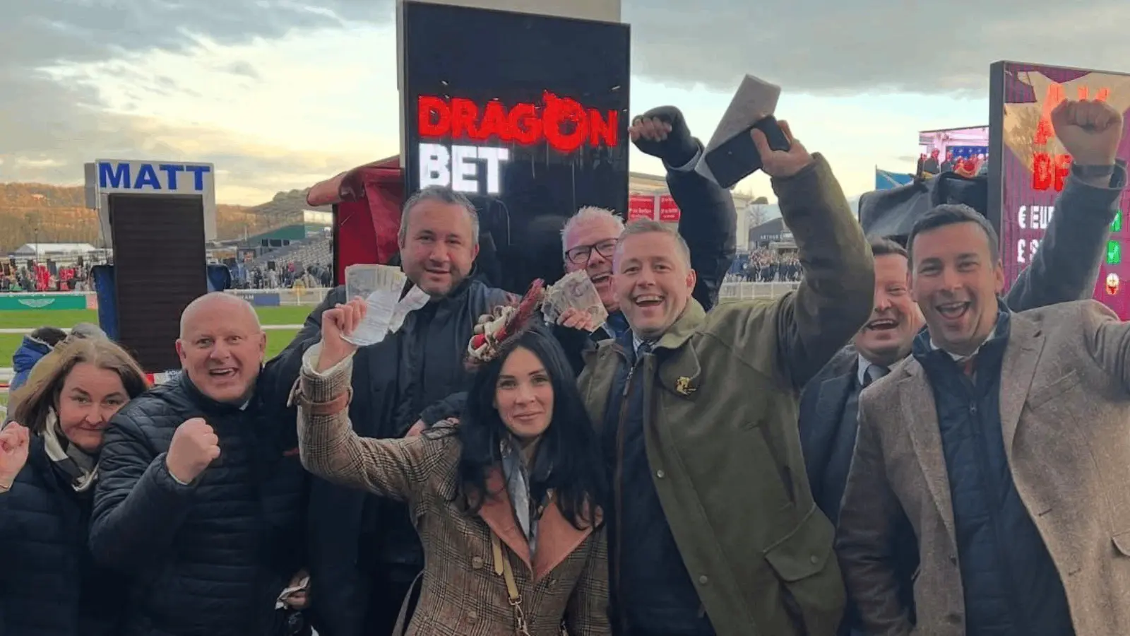 DragonBet staff and punters get in the mood at Cheltenham. Pic: DragonBet
