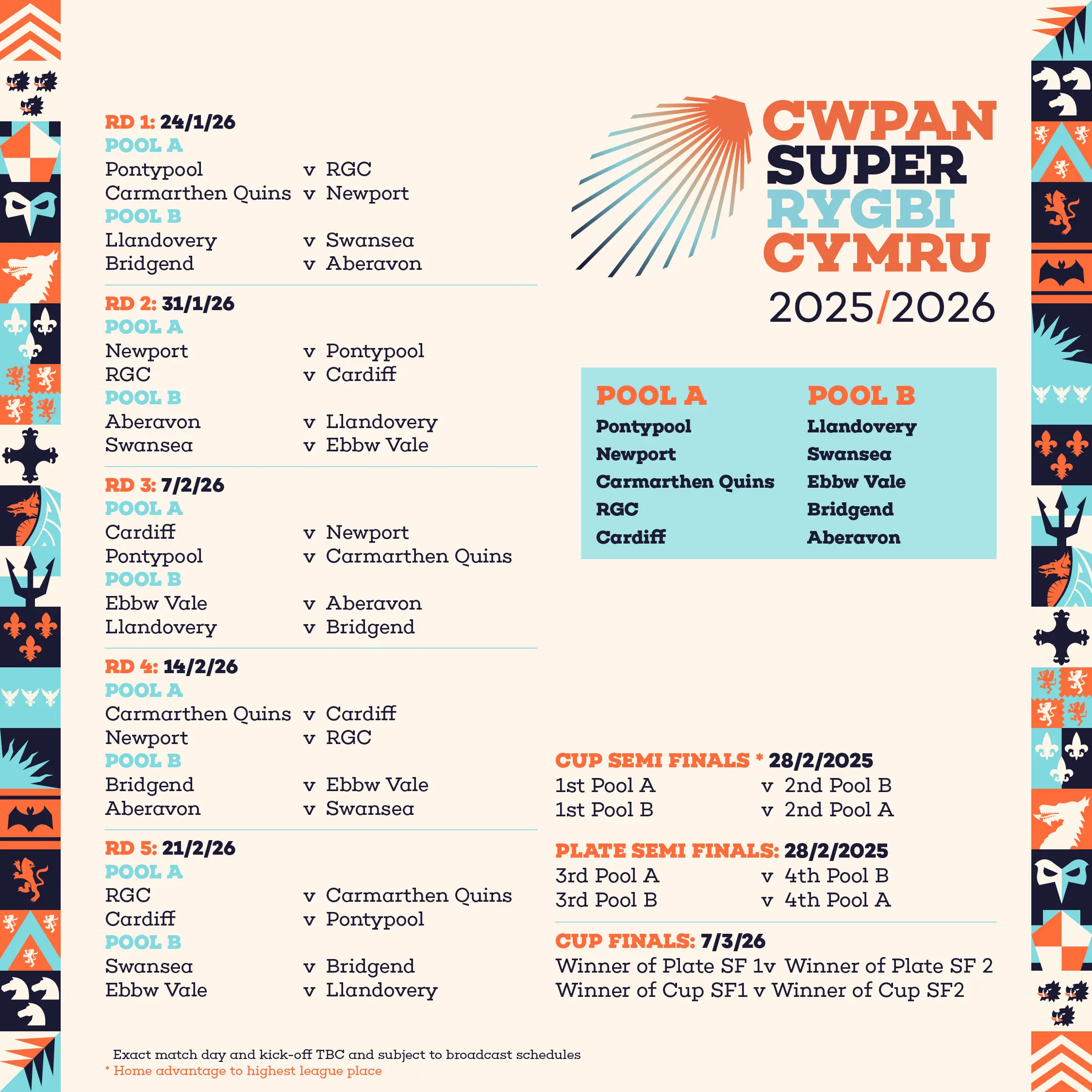 The SRC Cup will kick-off on 24 January, 2026 with Pontypool hosting RGC and Carmarthen Quins welcoming Newport in Pool A, in Pool B, Llandovery and Bridgend will be at home and will welcome Swansea and Aberavon respectively.
